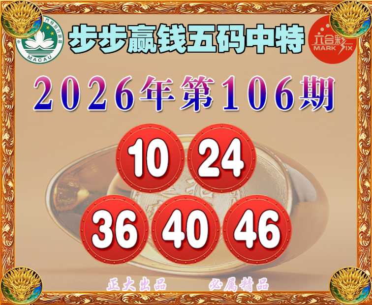 106期: 步步赢钱 🎪五码中特🎪【10.24.36.40.46】开:00准