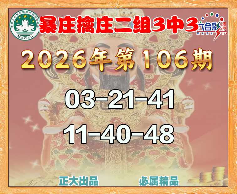 主题: 106期:正大澳彩【二组3中3】🀄【暴庄擒庄】〓 顶尖高手资料上线