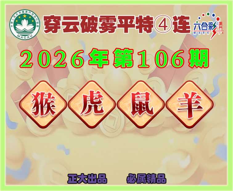 106期:『穿云破雾』 ✌️平特④连✌️【猴虎鼠羊】开:00准