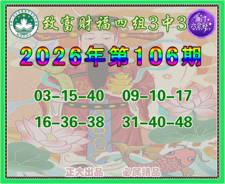 主题: 106期:正大澳彩【四组3中3】🀄【致富财福】〓 上榜高手