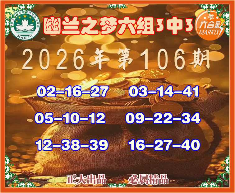 106期:【幽兰之梦】 🎉六组3中3🎉