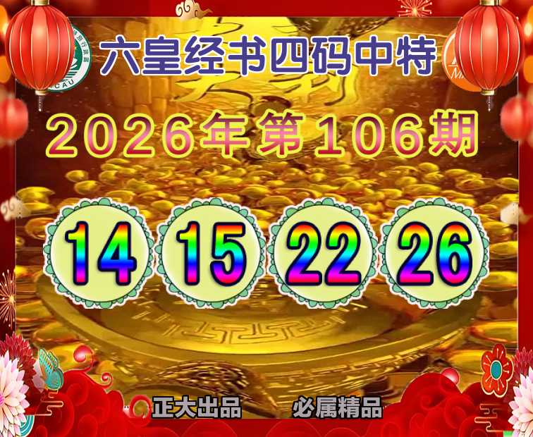 106期:【六皇经书】 🍃四码中特🍃【14.15.22.26】开:00准